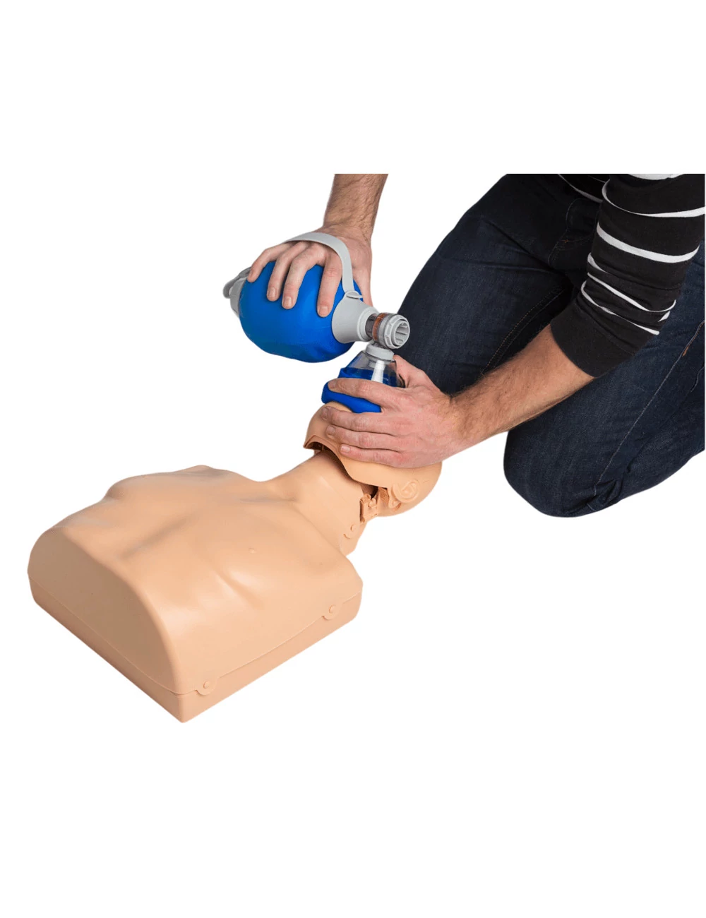 Torso adulto ideal para realizar formaciones del método de resucitación cardiopulmonar diseñado con un selector exclusivo de tres posiciones que permite elegir la opción de realizar la práctica sobre un adulto con la correspondiente resistencia natural. En ambas posiciones se escucha un sonido (click) que indica cuando las compresiones se realizan a la profundidad correcta. Dispone de una tercera posición donde desaparece el sonido y el tope de profundidad que está pensada para evaluar la correcta aplicación de la técnica.